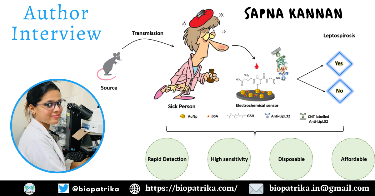 Sapna K, Sonia J, Shim YB, Arun AB, Prasad KS*. Au Nanoparticle-Based Disposable Electrochemical Sensor for Detection of Leptospirosis in Clinical Samples. ACS Applied Nano Materials. 2022. https://pubs.acs.org/doi/abs/10.1021/acsanm.2c01978