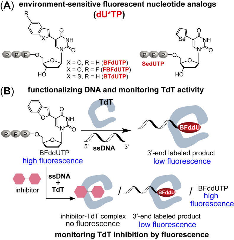 Our discoveries on TdT activity and recognition, and the versatile utility of our probe system, are expected to aid in advancing TdT-based DNA labeling, diagnostic, and therapeutic strategies.