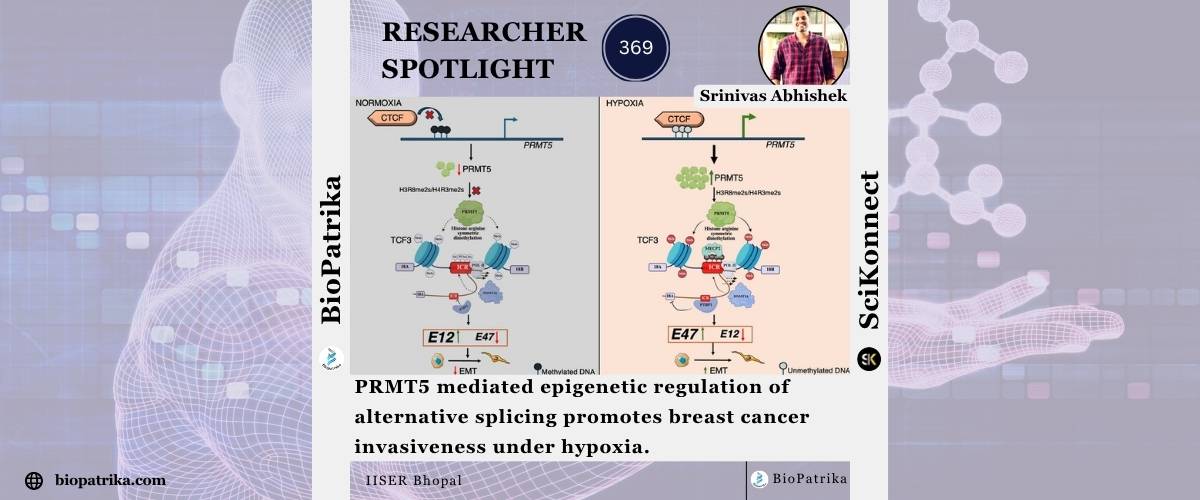 Mutnuru Srinivas Abhishek is a PhD scholar in Prof. Sanjeev Shukla’s lab at IISER-Bhopal, specializing in cancer epigenetics. His research focuses on how epigenetics mediated alternative splicing helps in tumor cell invasion under hypoxic conditions.