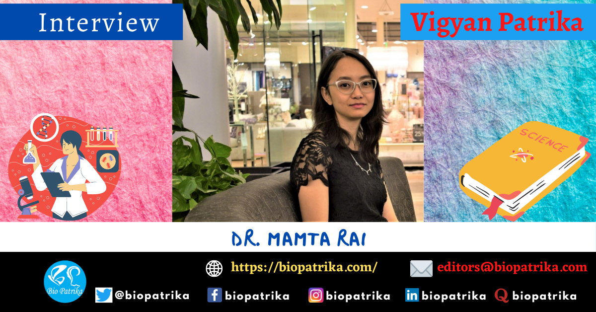 Dr. Mamta Rai’s interview with Bio Patrika hosting “Vigyan Patrika”, a series of author interviews. Fascinated with Mendelian Genetics taught by Mrs Neena Arora, a dedicated high school teacher, Dr. Mamta Rai took up an undergraduate course in Biomedical Sciences from University of Delhi and did her first research project during summer vacations at Dr. B R. Ambedkar Centre for Biomedical Research with Dr. Rita Singh. She worked on her master’s dissertation project, with Dr. V. M. Katoch on polymorphism typing of mycobacterium tuberculosis isolates. Her interest to pursue a career in research was largely contributed to by exposure to these research projects that she undertook to answer basic biological questions. Dr. Rai joined the laboratory of Dr. Upendra Nongthomba for PhD in Indian Institute of Science to study genes involved in Drosophila adult muscle development. She further expanded her horizons into the research of muscle biology. Following, Dr. Rai joined Dr. Fabio Demontis’ laboratory at St Jude Children’s Research Hospital (Memphis, USA) as a postdoctoral research fellow and worked on systemic benefits of skeletal muscles in brain aging. Here, Mamta talks about her work on “Proteasome stress in skeletal muscle mounts a long-range protective response that delays retinal and brain aging” published in Cell Metabolism.