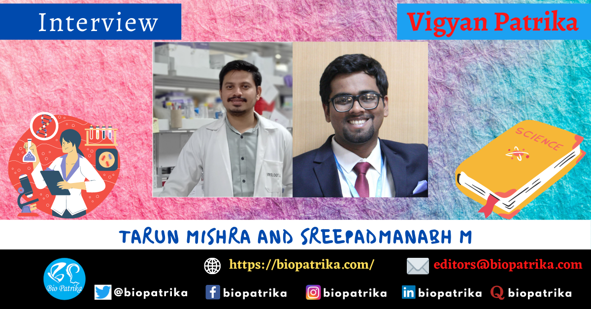 Tarun Mishra and Sreepadmanabh M’s joint interview with Bio Patrika hosting “Vigyan Patrika”, a series of author interviews. Tarun and Sreepadmanabh are joint-first authors on the recent research paper “SARS CoV-2 Nucleoprotein Enhances the Infectivity of Lentiviral Spike Particles”, published in the journal Frontiers in Cellular and Infection Microbiology (2021). In this interview, they talk about this work and its relevance in the context of the ongoing COVID-19 pandemic.
