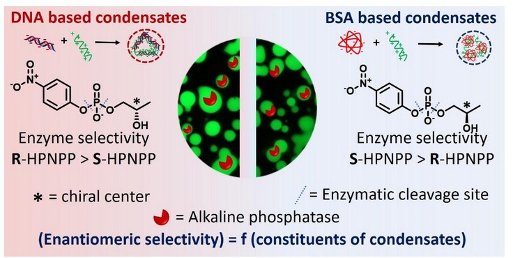 Paper reference: Shikha, S., Priyanka, P., & Maiti, S. (2025). Inversion of Enzymatic Enantiocatalysis Mediated by Biomolecular Condensates. Biomacromolecules. https://doi.org/10.1021/acs.biomac.5c00520