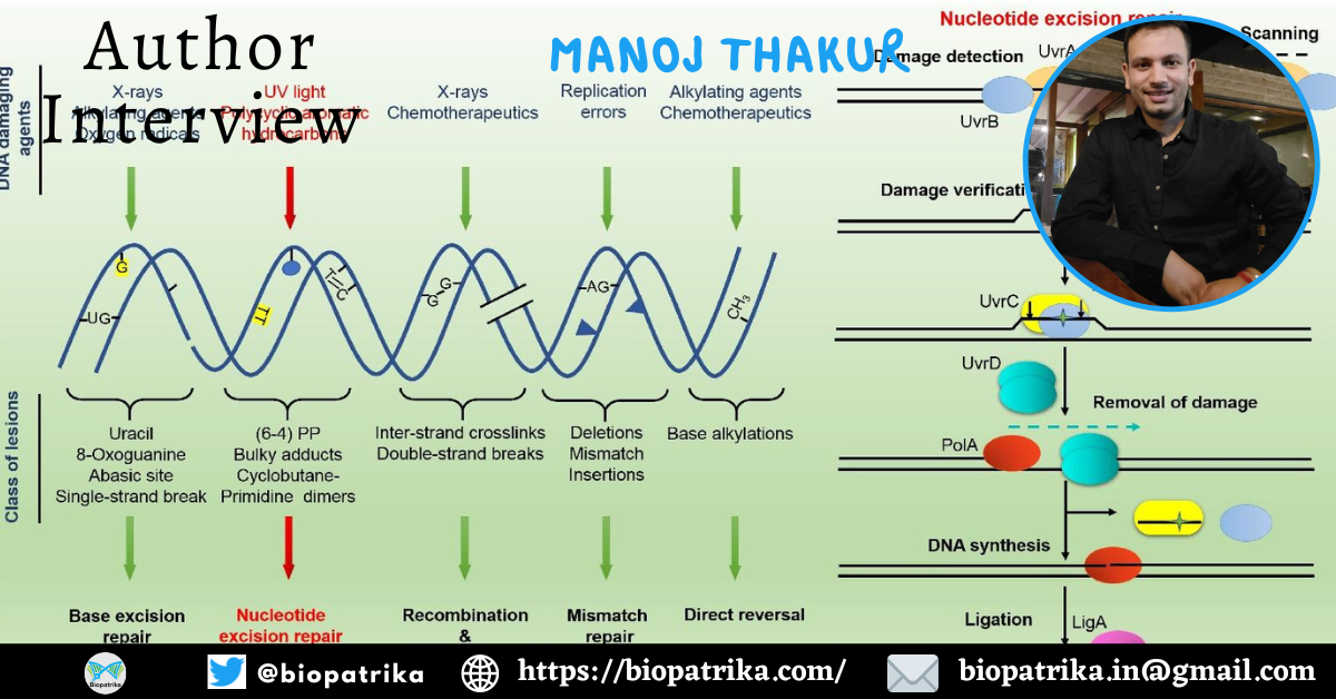 Evolution has invested significantly by implementing an intricate network of DNA repair systems in every organism — from bacteria to humans —to circumvent the diverse and generally adverse outcome(s) of DNA damage. These different DNA repair systems can be classified on the basis of the type of lesion being processed and protein components or mechanisms involved in the repair pathway. In other words, a cell deploys an arsenal of complementary protein molecular machinery that recognizes a class of DNA lesions and targets them for removal from the DNA. In the Escherichia coli paradigm, these include direct reversal of damage, nucleotide excision repair (NER), mismatch repair (MMR), base excision repair (BER), homologous recombination (HR) mediated repair, and non-homologous end joining (NHEJ) (Figure 1). These studies had also been recognized with “Nobel Prize in Chemistry 2015” to Tomas Lindahl, Paul Modrich, and Aziz Sancar highlighting the significance of DNA damage and repair systems in all three domains of life.