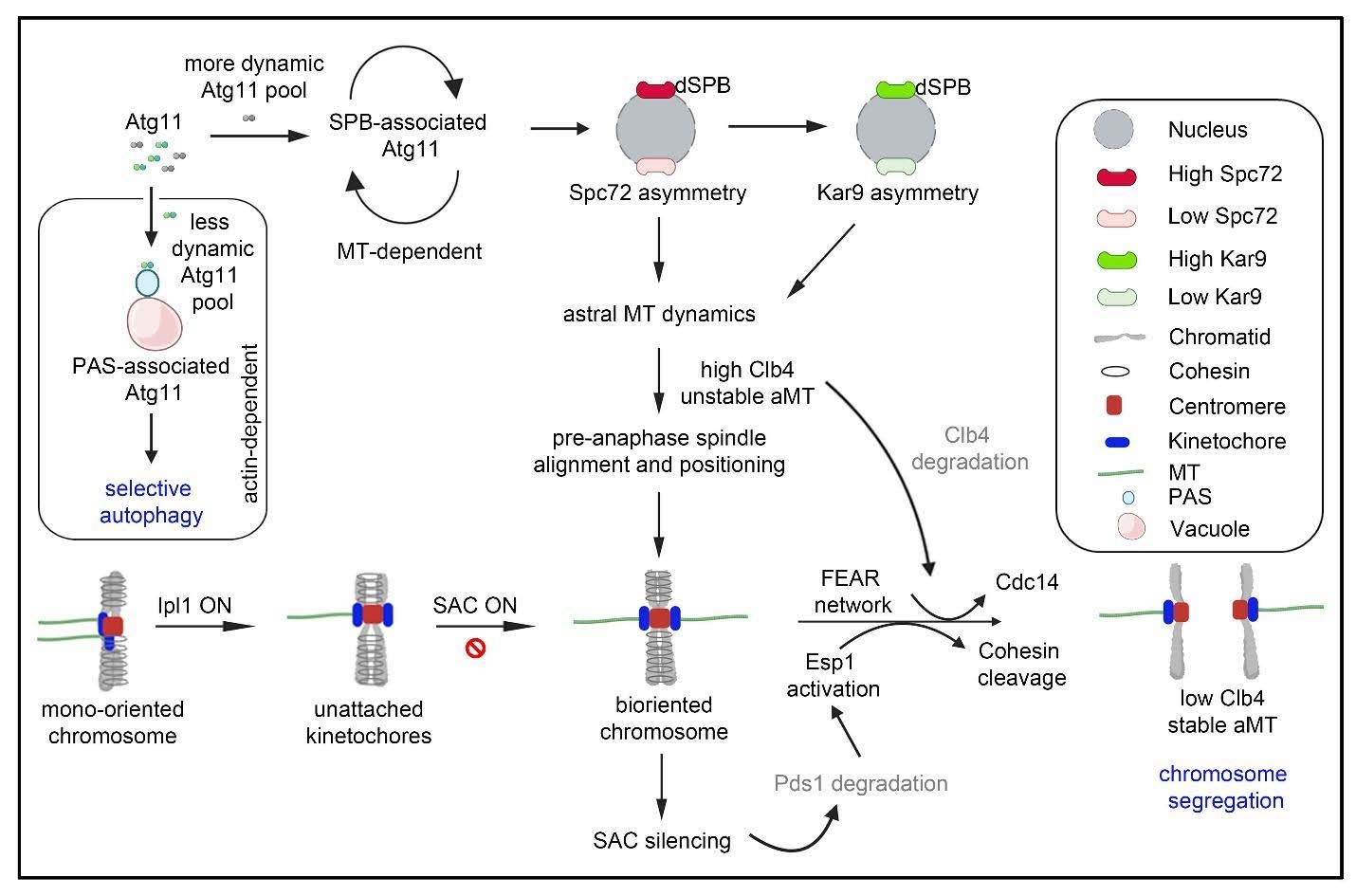 Research Summary: We explored a novel role of an autophagy-related protein, Atg11, in the microtubule (MT)-mediated process of chromosome segregation. This study emphasizes the complex interactions between spatially distinct processes within a cell.
