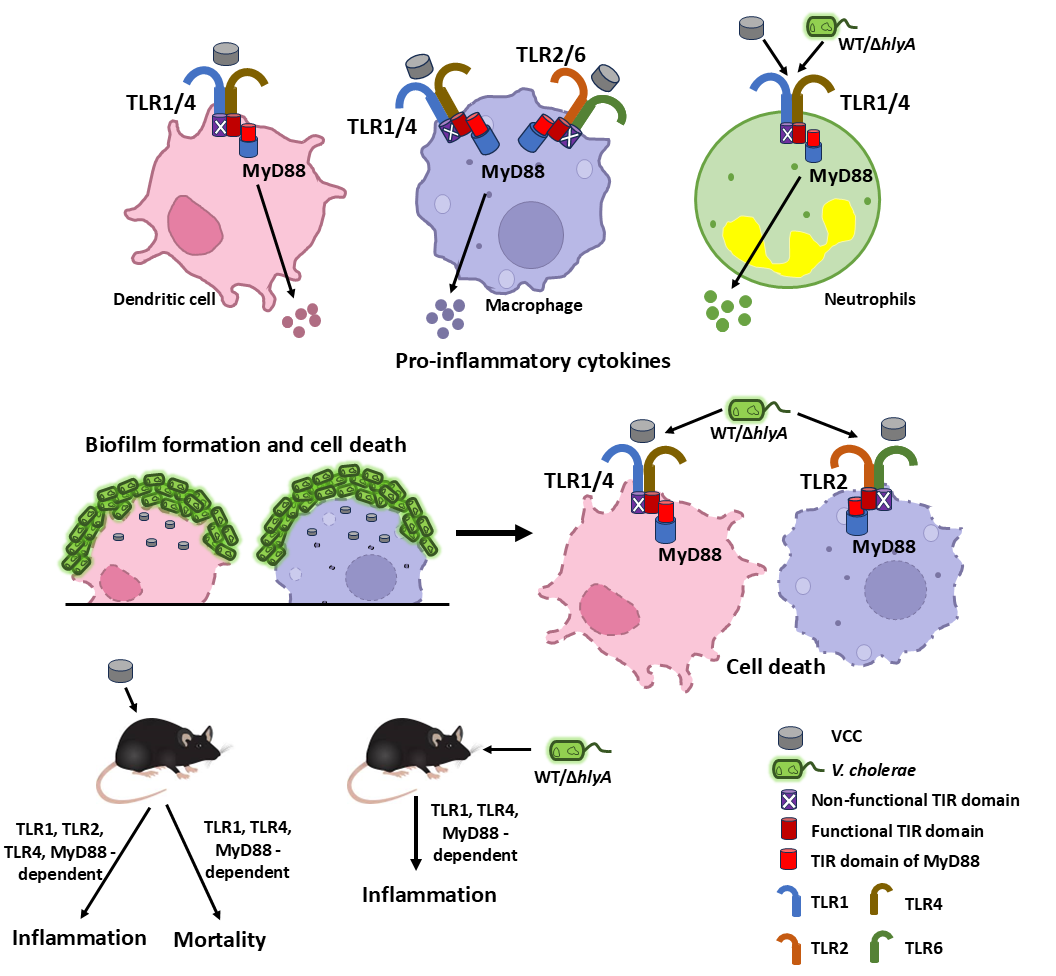 Paper reference: Gandhi, S., Puravankara, S., Mondal, A. K., Chauhan, A., Yadav, S. P., Chattopadhyay, K., & Mukhopadhaya, A. (2025). Vibrio cholerae cytolysin induces pro-inflammatory and death signals through novel TLR assembly. PLoS pathogens, 21(4), e1013033. https://doi.org/10.1371/journal.ppat.1013033