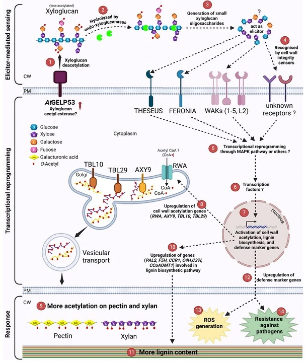 Paper reference: Rastogi et al., Arabidopsis GELP53 overexpression modulates polysaccharide acetylation and defense through oligosaccharide-mediated signaling, The Plant Cell, Volume 37, Issue 11, November 2025, koaf184, https://doi.org/10.1093/plcell/koaf184