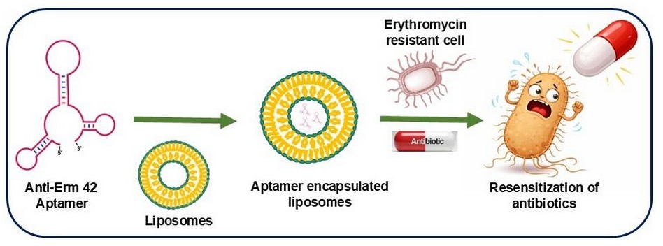 Paper reference: Liposome-based delivery of DNA aptamers to inhibit erythromycin methyltransferase-mediated antibiotic resistance. Swagata Patra,* Damini Sahu, Leena L. Badgujar, P. I. Pradeepkumar, and Ruchi Anand*. Chem. Commun., 2026,62, 4050-4053. https://doi.org/10.1039/D5CC06813D