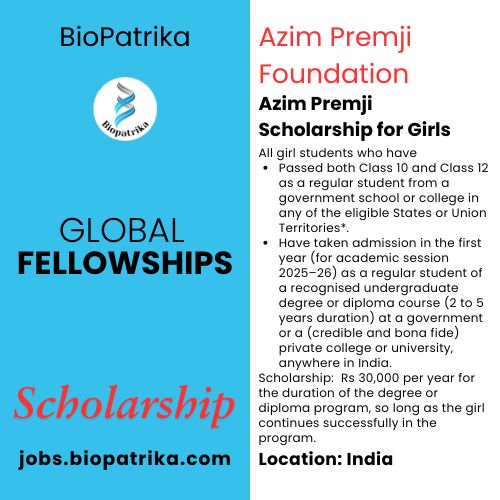 Over 25,000 girl students were awarded the scholarship in 2024-25 Bangalore, May 15: Azim Premji Foundation today announced the Azim Premji Scholarship to support girls pursuing higher education after school. Azim Premji Scholarship for up to 2.5 lakh girl students across 18 states.
