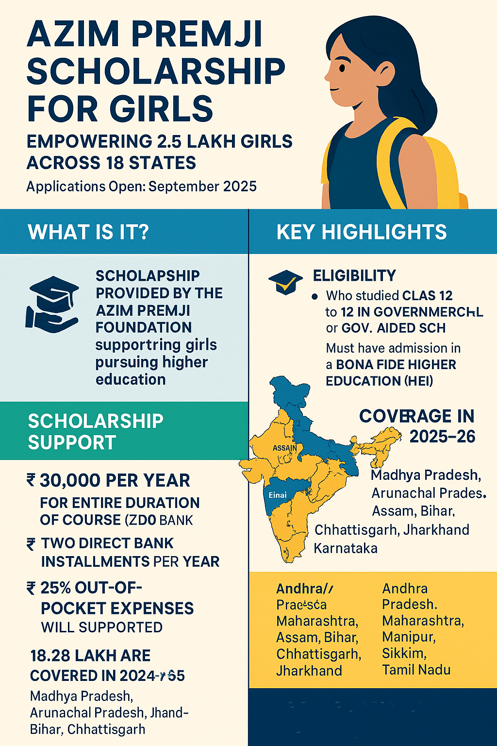 The Foundation estimates that it will offer the Azim Premji Scholarship to up to 2.5 lakh girls in the academic year 2025-26. The program will be available in 18 states of the country.