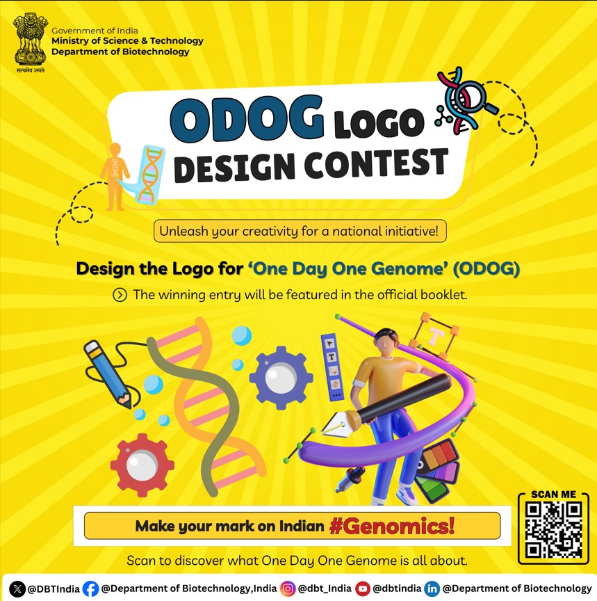Design the official logo for ‘One Day One Genome’ #ODOG – a landmark initiative by the DBTIndia 🇮🇳