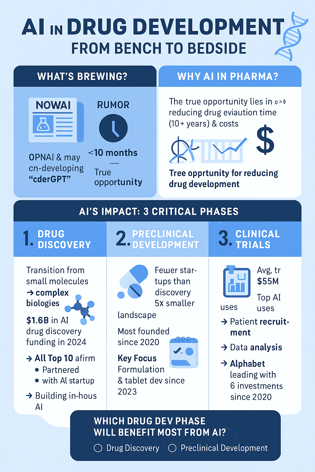 🔍 True opportunity lies in reducing drug dev time (10+ years) & costs ($B).