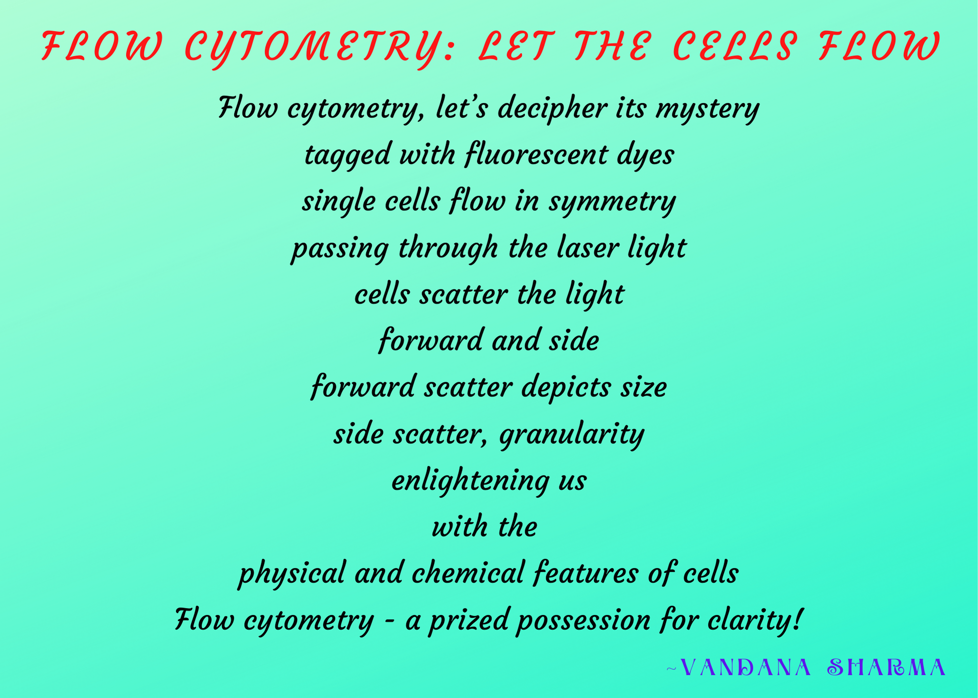 Vandana Sharma earned her PhD from AIIMS, New Delhi. Poetry writing is her hobby. Her poems (general and science) have been published in various national/international poetry and peer reviewed medical journals. Some of them are Harvests of New Millennium, Sky Island Journal, Rewrite Sunlight Anthology, Ashvamegh Magazine, VerbalArt, Borderless Journal, Consilience (peer reviewed science poetry journal), International Journal of Epidemiology.